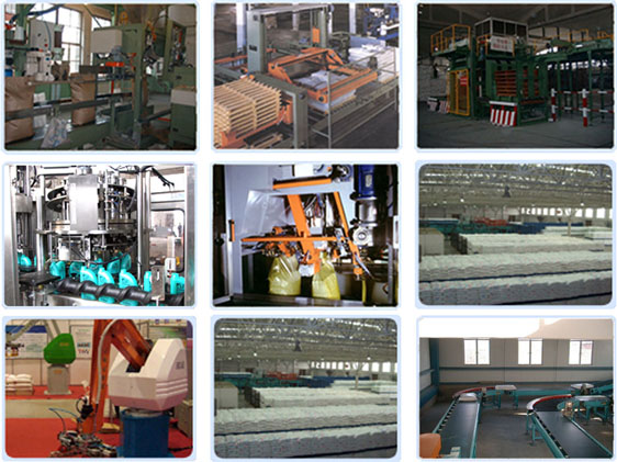 公司所生產(chǎn)的產(chǎn)品廣泛應用于石油化工、合成橡膠、化肥、鹽業(yè)、建材、糧食飼料、食品、飲料、煙酒、鋼鐵、郵政、港口等行業(yè)的顆粒、粉末、塊、片狀、盒、箱、瓶、袋、桶等固體和液體物料的包裝碼垛生產(chǎn)線,此外還提供不同功能的單機設備。